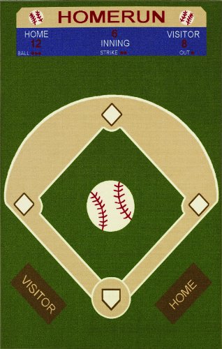 Hit a home run with your kids with this great baseball field rug. Sure to be his favorite, this design is printed on 100% Premium Nylon for ease of care and durability. Spot clean with mild soap and water. 4'5" x 6'9". Imported.